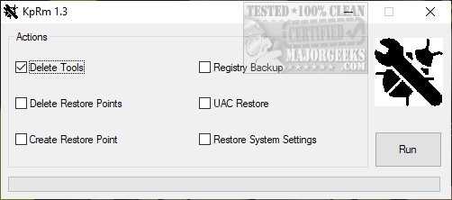 KpRm is a freeware tool that can help finalize cleaning up after remediating a nasty infection by removing the most known antimalware apps, backing up the registry, creating and deleting System Restore points, UAC restore, and restoring system settings.