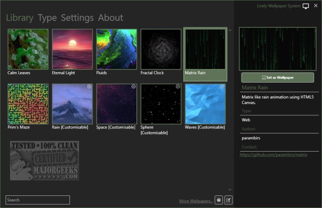 Lively has a friendly interface and a library of downloaded or added wallpapers.