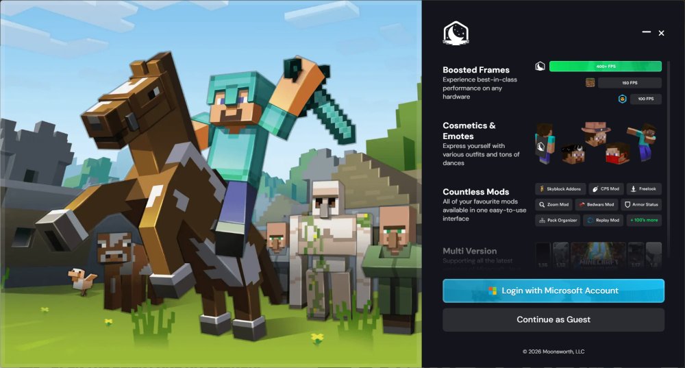 Lunar Client is a free, performance-focused Minecraft launcher that bundles popular mods, boosts FPS, and adds competitive PvP features without the hassle of manual mod setup.