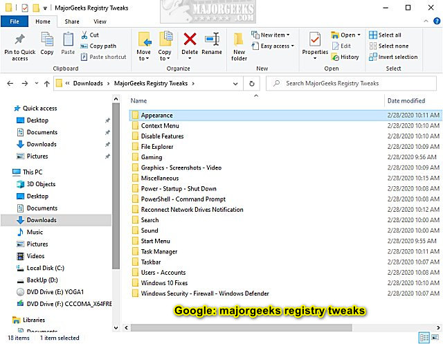 Whenever possible, the file listing pages include directions to make the changes yourself. Every folder contains MajorGeeks Tutorial Link.html to see instructions or details on that particular tweak.