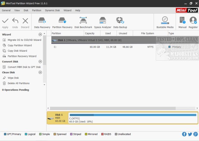 MiniTool Partition Wizard Free Edition 13.6 released @ MajorGeeks