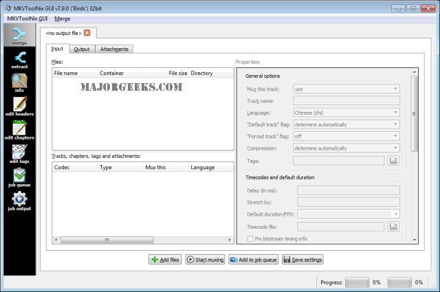 MKVToolnix is a freeware utility that allows you to create, alter, inspect, etc., video files with the MKV format. Also available for 64-Bit.