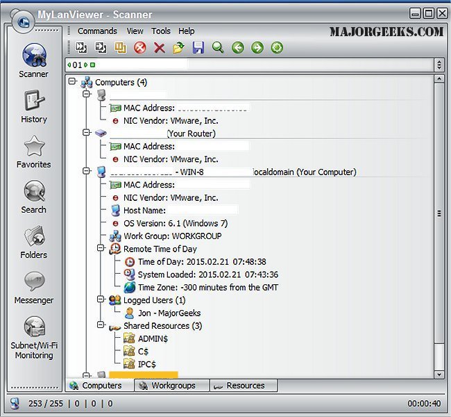 MyLanViewer Network/IP Scanner is a powerful Netbios and LAN/Network IP address scanner that assists in locating IP addresses, MAC addresses, and shared folders of computers on your wired or wireless (Wi-Fi) network.