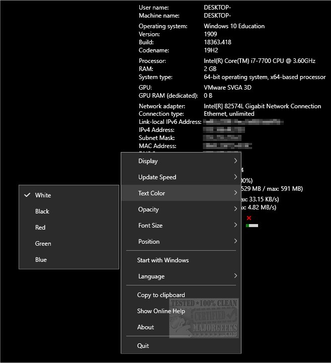 One of the key features of O&O DeskInfo is its customization options. Users can adjust the display settings, including update speed, opacity, text color, and position on the desktop. Additionally, the app supports clipboard functionality, enabling users to easily copy system data when necessary. It can be configured to start automatically with Windows or be launched manually, and all settings can be accessed through a right-click on the system tray icon. For advanced users, further modifications can be made via a configuration file.