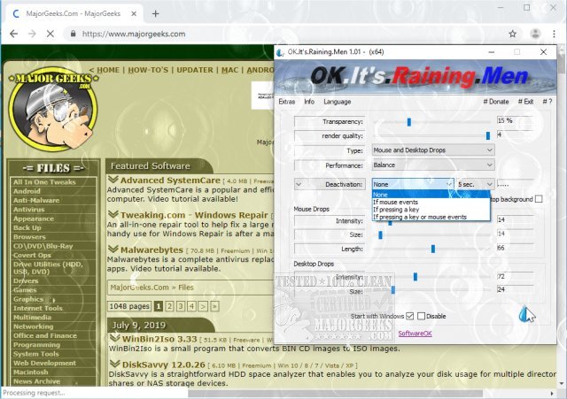OK.It's.Raining.Men is not what you think it is - no men involved. Hallelujah! It is just a neat and free configurable rain effect for your desktop.