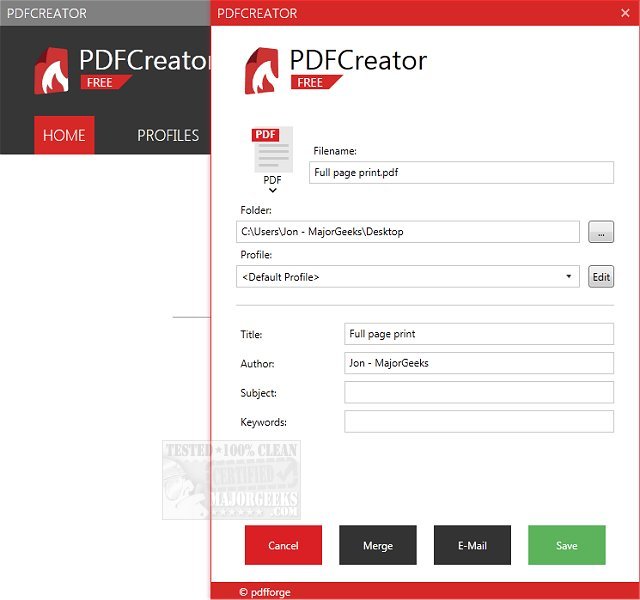 PDFCreator easily creates PDFs from any print-ready program. It is very secure and can even encrypt PDFs to protect them from being accessed. That's not all for security; other features include digitally signing your PDFs, ensuring you are the author, and it hasn't been otherwise modified. You can also merge PDF files, autosave your folders and filenames on your criteria, and much more. Some of these options depend on what you choose when you install PDFCreator.