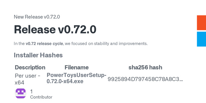 Jaime Bernardo has announced the release of PowerToys 0.72.0.