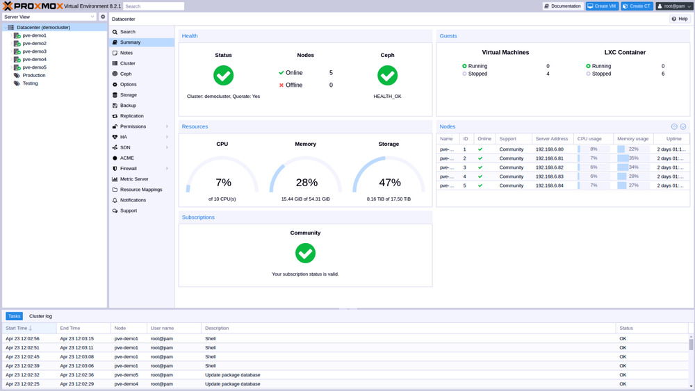 Proxmox VE remains committed to its open-source philosophy by releasing its complete codebase under the GNU AGPLv3 license, ensuring it is Free/Libre and Open Source Software (FLOSS). For enterprises, optional professional subscription support plans are available, providing certified updates and technical assistance, which is particularly beneficial for production environments.