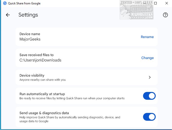 Quick Share (formerly Nearby Share) from Google 1.0.2527.0 released @ MajorGeeks