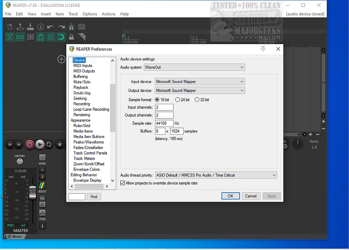 - File Support: Reaper can read common audio formats like WAV, OGG, MP3, and MIDI, and it records in clean WAV and MIDI formats without unnecessary frills.