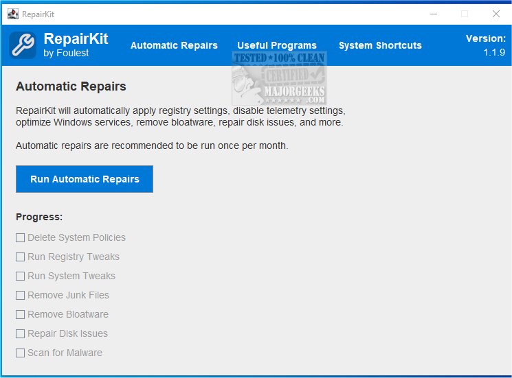 RepairKit efficiently performs a thorough system cleanup and repair, including: