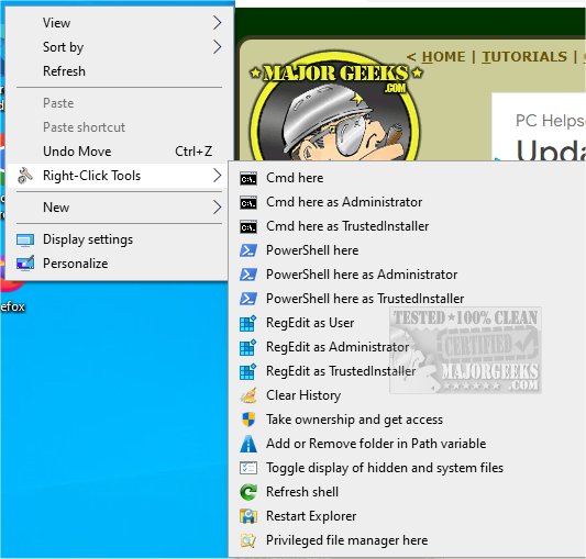 - Cmd Here and PowerShell Here as TrustedInstaller: Enables access to Command Prompt or PowerShell via the SYSTEM account for modifying protected directories.