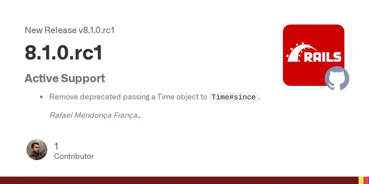 The first release candidate for Ruby on Rails 8.1.0 has been released, featuring new features and updates to several components, including Active Support, ActiveRecord, and Action View. The changes include improved event reporting, enhanced JSON formatting, and updated password reset token functionality, as well as fixes for issues related to time travel test helpers and query caching in multi-threaded tests. Additional updates have been made to Action Text, allowing for the capture of block content for form helper methods, and Active Storage, with new structured events and improved analyzer support. Railties has also undergone changes, including the removal of old commands and a revised scaffold generator that no longer creates system tests by default.