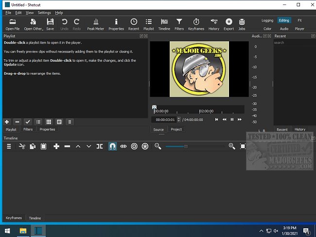 Shotcut offers essential tools such as filters, transitions, keyframe animations, and chroma key for those looking to do green screen work. Audio editing is equally robust, with features including EQ, compression, and real-time scopes. The software also leverages GPU acceleration for smoother previews and quicker exports, particularly beneficial for handling large 4K files, though users may encounter some quirks.