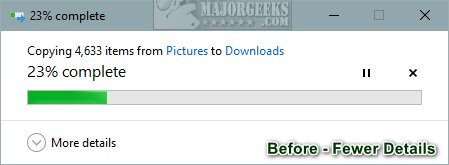 Show More Details in File Explorer Transfer Dialog contains the registry files to show "More Details" by default when copying files with File Explorer.