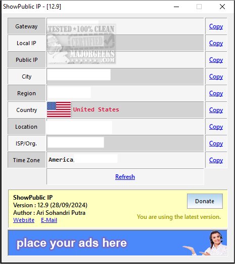 The application can be easily set up as a desktop shortcut, allowing for quick access to your public IP information whenever it's needed. Users can also copy any displayed details to the Windows clipboard for use in other applications or documents. For those using a VPN to hide their actual IP address and location, ShowPublic IP is a useful tool to verify the VPN's effectiveness. By clicking the Refresh button, users can update the displayed information to ensure accuracy.