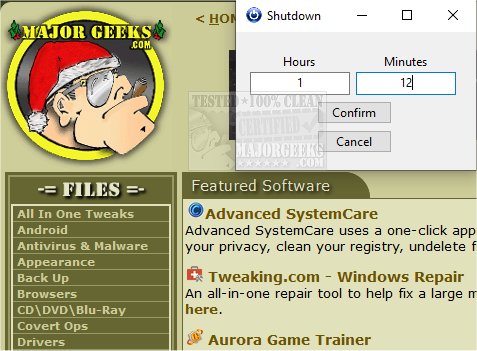 If you enter a 0 or no time is entered, you will get an error message popup that will prevent immediate accidental shutdowns from occurring. The hour and minute boxes only accept numeric entries.