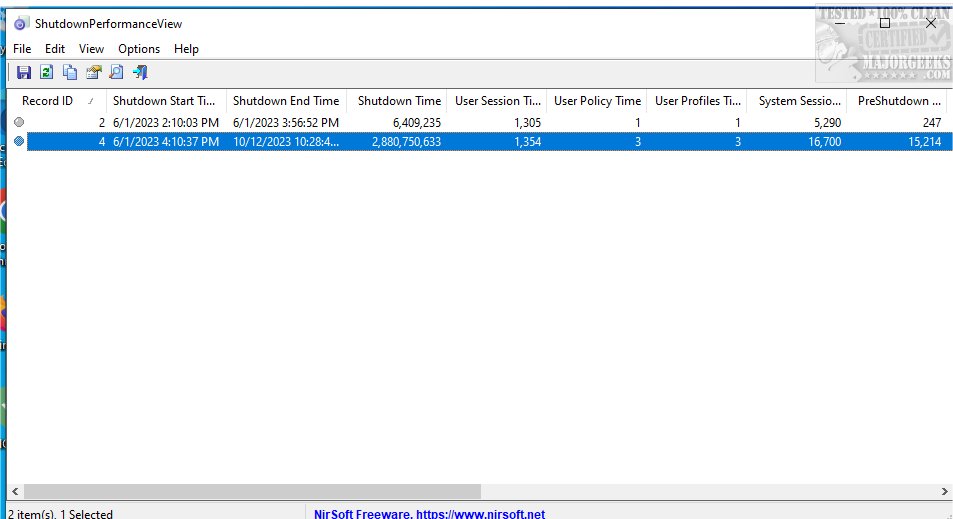 Leveraging data sourced from the Microsoft-Windows-Diagnostics-Performance/Operational event log, ShutdownPerformanceView provides users with detailed insights into their system's shutdown process. Key metrics include: