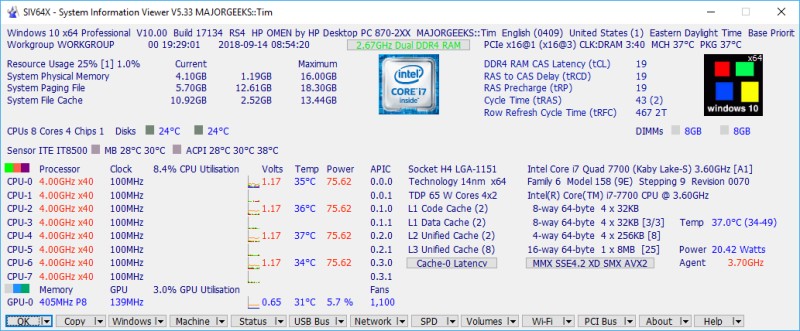SIV (System Information Viewer) displays useful Windows, network, and hardware info.