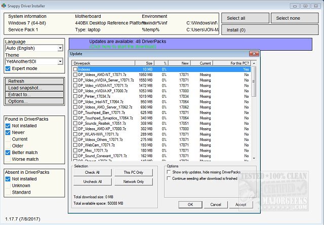 Offline Powerhouse: Got a PC with no internet access? No problem. SDI lets you download driver packs ahead of time (yes, even multi-gig driver libraries) and use them offline. Perfect for those sticky situations where network drivers are missing post-OS install.