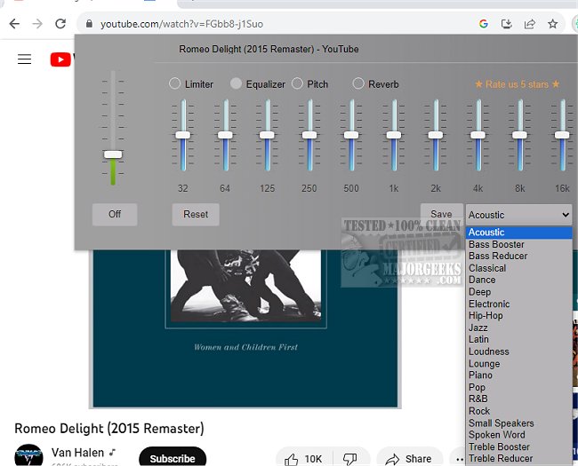 Sound Equalizer for Chrome gives you a powerful equalizer to use while browsing your favorite source sites.