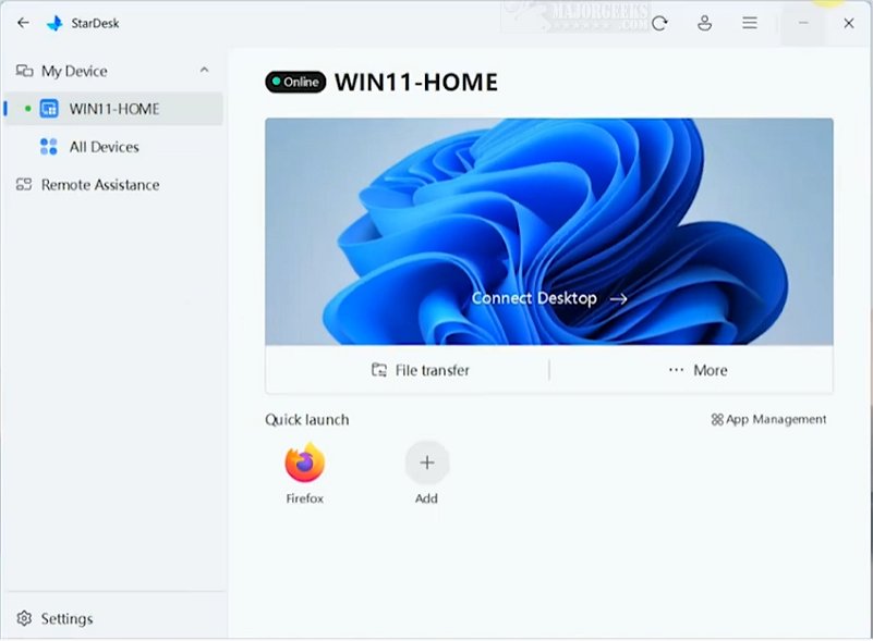 StarDesk includes a comprehensive Control Center, where users can customize various connection properties, such as display resolution and security settings. The built-in File Transfer utility simplifies file sharing, enhancing the overall remote experience.