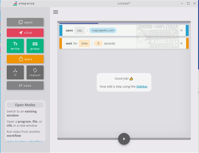 The interface is designed for clarity, providing helpful tips as users navigate through the automation process. For instance, if you frequently check the MajorGeeks site, you can automate this task to receive updates daily without manual effort. Additionally, there is a portable version of Stepwise that allows users to benefit from its features while on the go.