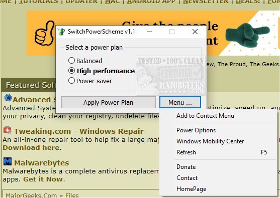 SwitchPowerScheme is a portable utility for changing power plans via the right-click context menu.