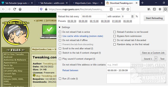 Tab Reloader for Chrome, Firefox, Edge, and Opera 0.6.7 released @ MajorGeeks