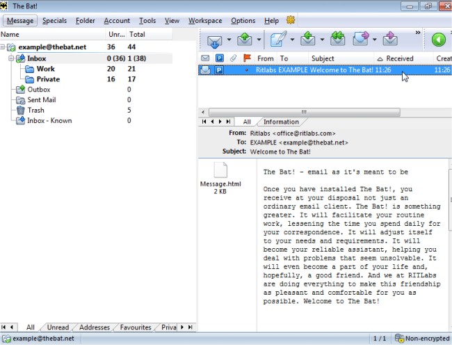 One of its standout attributes is the virus-proof email system, ensuring secure and safe e-communication without compromising usability. The Bat! Home Edition is equipped with a robust feature set, including strong encryption for enhanced security, backup and restore functionalities, and its own integrated address book for easy contact management. Additional features include message parking, an internal HTML viewer, an image download manager for seamless retrieval of HTML images in the background, and an antivirus interface for added protection.