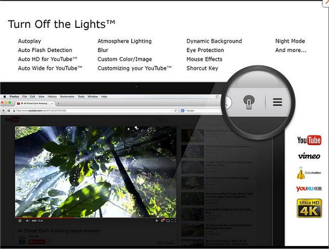 Turn Off the Lights for Chrome, Firefox, and Edge is a useful browser extension that lets users obscure everything on their screen except the Flash or HTML5 video they're watching, minimizing distractions and making for a more pleasant viewing experience.