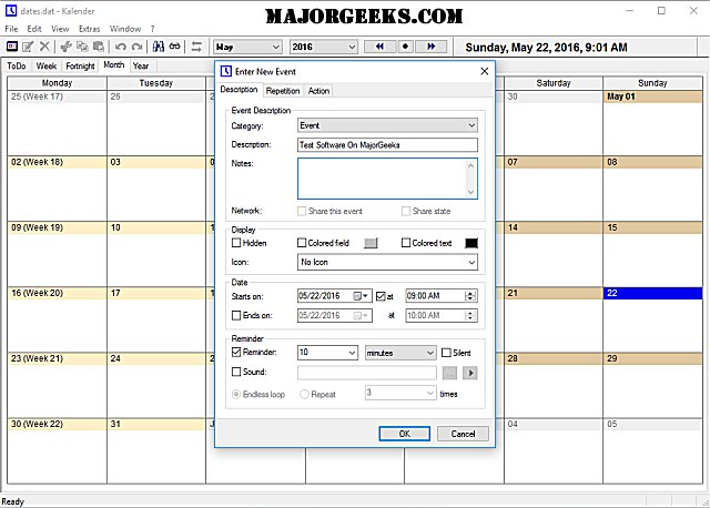 At just under 3 MB, it is lightweight yet packed with features that enhance user experience. The latest version includes automatic saving, unlimited undo and redo options, network support, and the ability to set repeating events. It also offers forewarn time settings, a snooze function, multi-day event management, and categorization through templates. Users can benefit from the search and filter capabilities, and events can be exported in HTML and CSV formats.