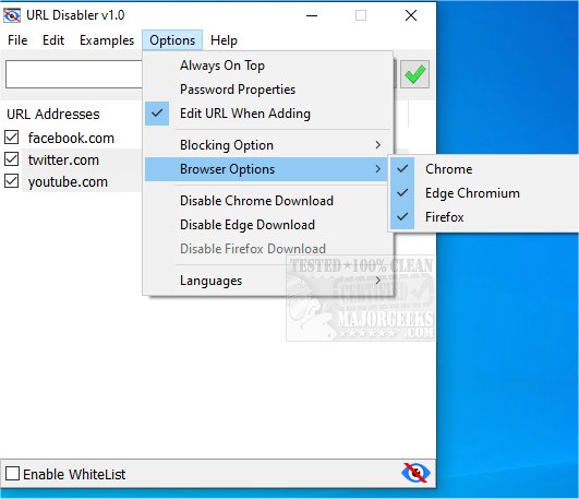 URL Disabler is a portable utility designed to simplify the process of URL blocking in Chrome, Firefox, and Chromium Edge.