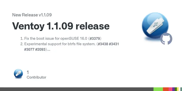 Ventoy, a popular bootable USB drive utility, has been updated to version 1.1.09 with several key improvements and new features. A frustrating bug that prevented openSUSE users from booting has been fixed, making it smoother for affected users. The update also includes experimental support for the Btrfs file system, but with limitations: it only works in non-RAID setups and doesn't support compressing ISO files made for btrfs. Additionally, several other bugs were addressed, including an issue affecting persistence plugins for Arch Linux users and problems related to the web interface for managing VentoyPlugsons.