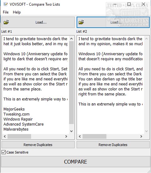 VOVSOFT Compare Two Lists 1.7 released