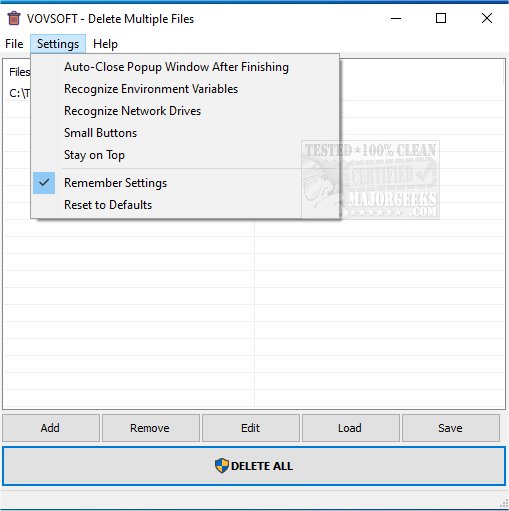 VOVSOFT Delete Multiple Files allows for batch file/folder deletion accomplished through a simple process.