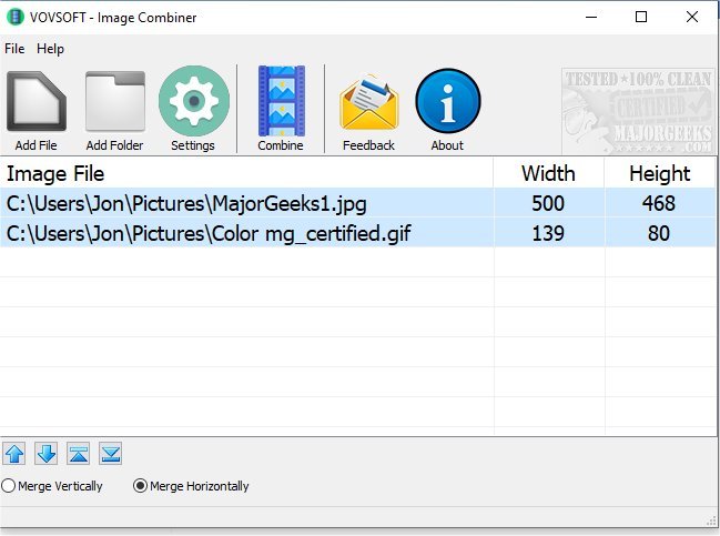VOVSOFT Image Combiner can horizontally or vertically combine images through a straightforward process.