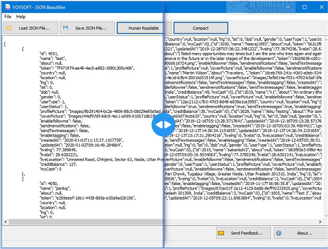 The VOVSOFT JSON Beautifier operates by structuring the data according to its curly brackets, offering a straightforward user interface with essential functions such as Load, Save, Make Human Readable, and Compact. This makes it an ideal solution for anyone who frequently works with JSON files, providing a hassle-free method to navigate through their contents.
