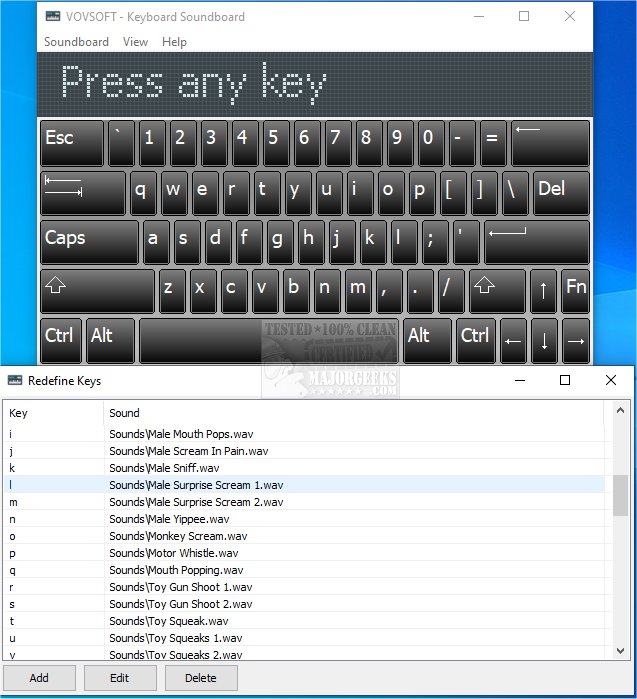 VOVSOFT Keyboard Soundboard is a fun little app that allows you to assign sounds to keyboard keys.