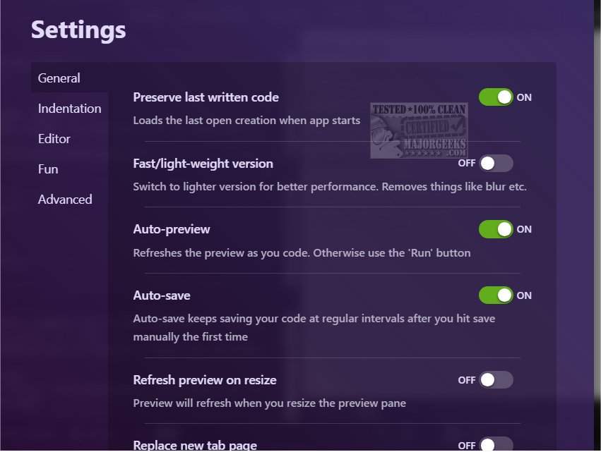 The application is specifically designed to foster a productive coding environment, featuring a sleek dark graphical user interface (GUI) where developers can easily input HTML, CSS, and JavaScript code. Users can view real-time previews of their work, displayed conveniently alongside their code input, which enhances the learning and experimentation process.
