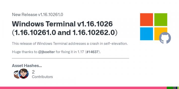 A new Microsoft news has been published: Windows Terminal 1.16.1026 released