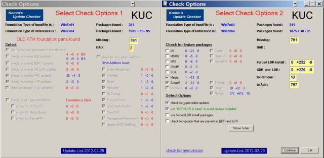 Windows-Update-Checker (KUC - Komm's Update Checker) is a small utility that will check what updates are installed, missing, or removable on your Windows 7, 2008, 8, and 8.1 systems.