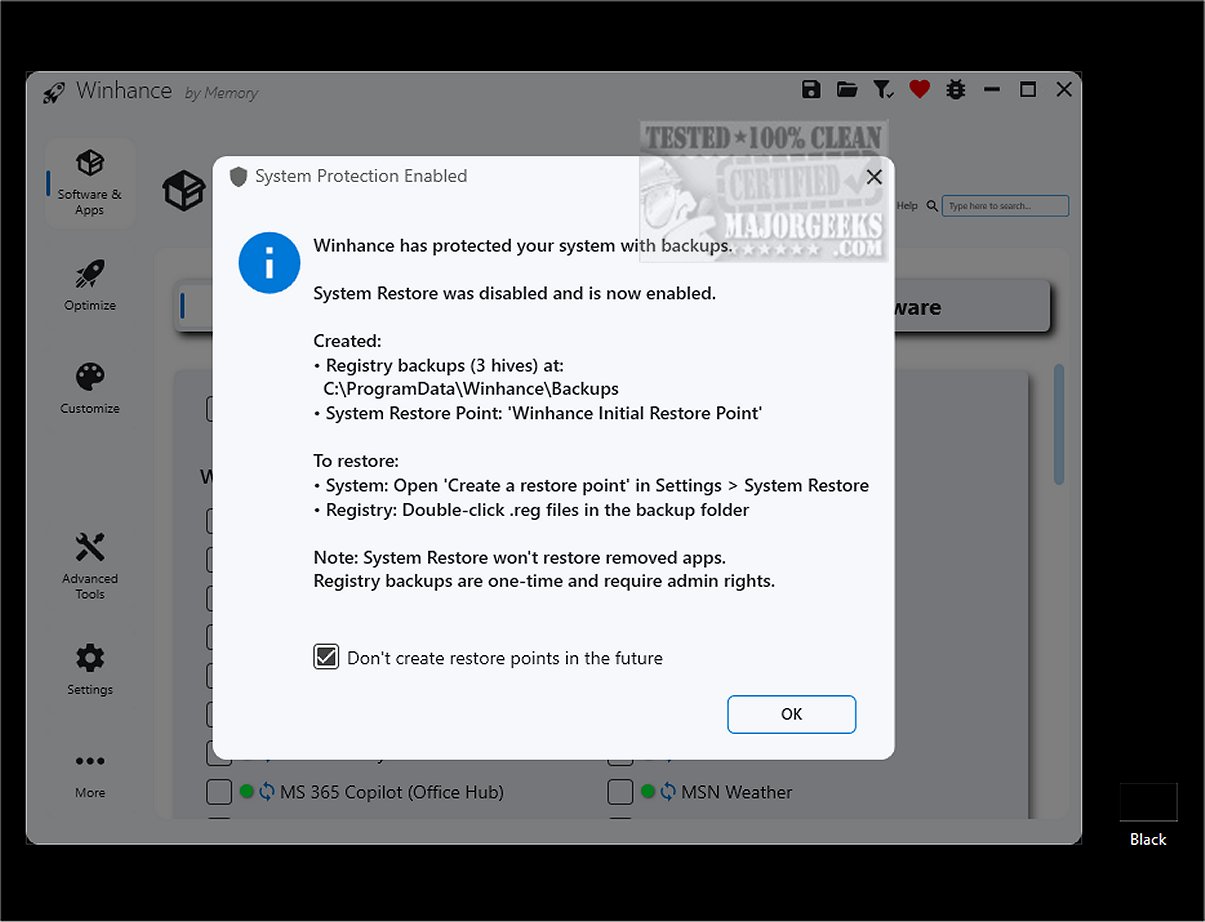 Before running Winhance, it is recommended to create a system restore point, which the program can assist with, ensuring a backup is available if needed. The Winhance website also features a well-organized documentation section covering all functionalities.