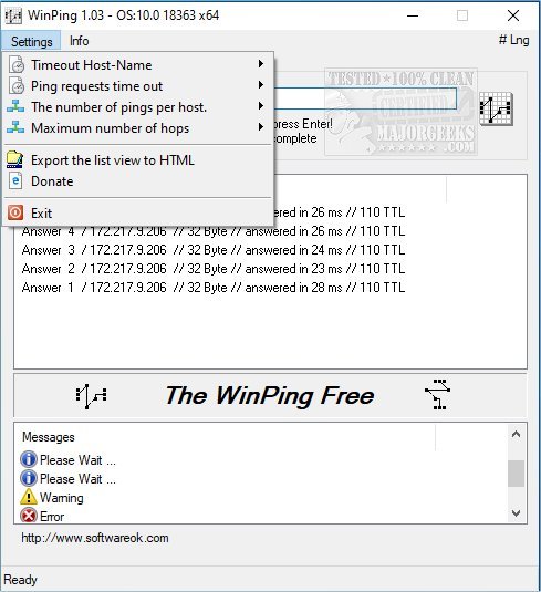 WinPing provides you with the ability to check or measure connections in your local network as well as on the internet.