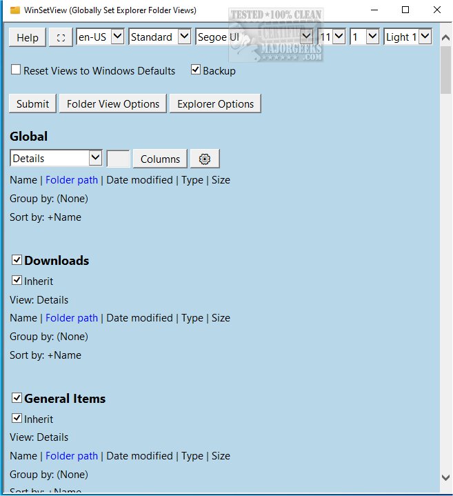 - Backup and Restore Functionality: Each execution of WinSetView creates a unique backup of the affected registry values, allowing users to revert to previous settings if desired. A reset option is also available, enabling users to restore all Explorer views to their original Windows default settings.