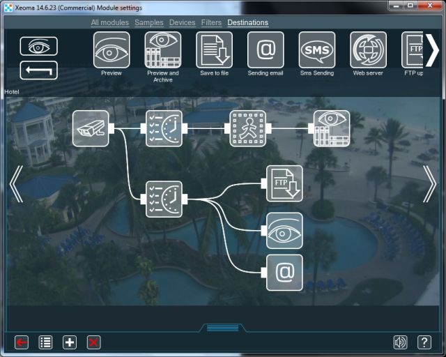 The software boasts a highly intuitive interface that allows for the visual connection of functional modules, making it as easy as assembling a child's construction set. Xeoma supports a wide range of operating systems and offers an extensive number of modules in its basic version, alongside flexible settings to cater to unique video surveillance needs.