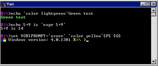 Yori is a CMD replacement shell to augment command-line capabilities with support for backquotes, job control, and improving tab completion, file matching, aliases, command history, and more.